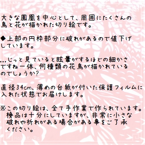 切り絵 剪紙 L102 工芸品 百鳥図 訳あり 直径34cm