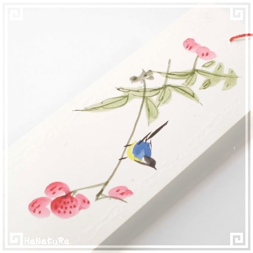 花と鳥が描かれた(しおり)栞です。