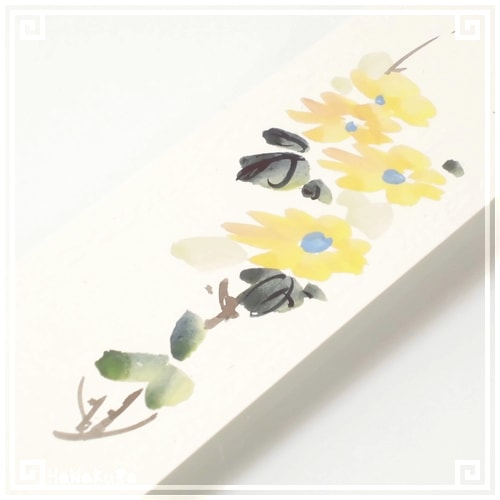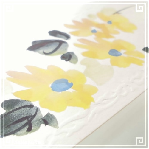 周囲を凹凸エンボス加工した無地の台紙に、花が手描きされています。