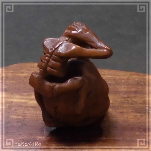 柘植(ツゲ)の木材を彫刻した骸骨の小さな根付けです。