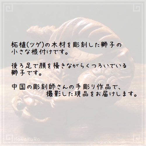 つげ 根付け 木彫り 彫刻 304 くつろぐ獅子(右)