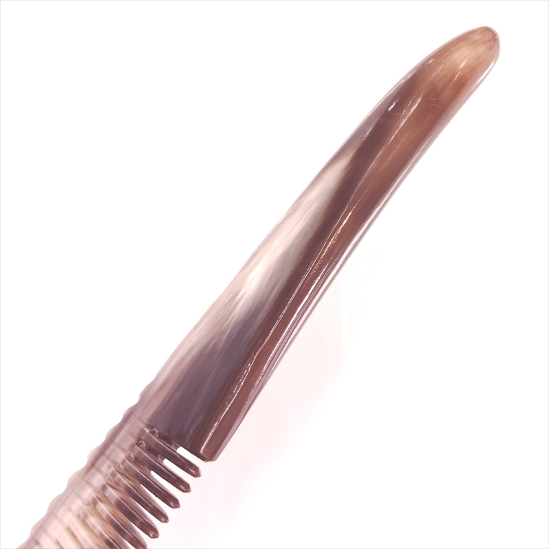 水牛の角を削って作った、静電気が起きない高品質な櫛(くし)です。