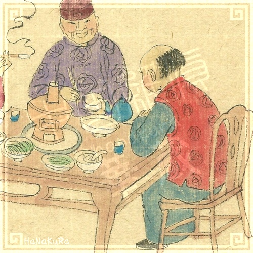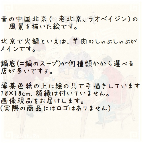 中国 老北京 手描き絵 37 吃火鍋 鍋を食べる 18cm レトロ 手書き 昔の風景画 台紙付き 額無し