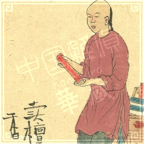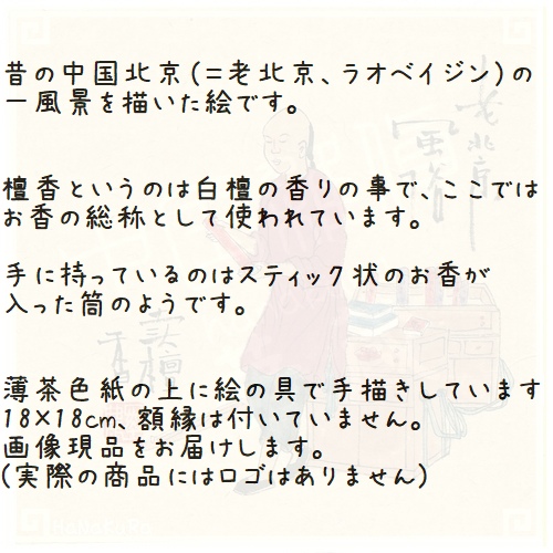 中国 老北京 手描き絵 39 売檀香 お香売り 18cm レトロ 手書き 昔の風景画 台紙付き 額無し