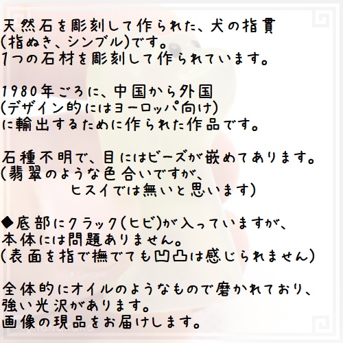 - 天然石を彫刻して作られた、犬の指貫(指ぬき、シンブル)です。