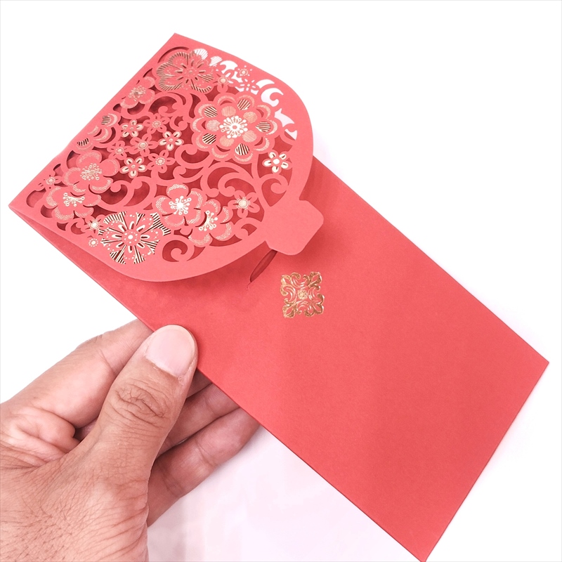 紅包 他01(特厚) 金花紋_花剪紙 4枚 230g/m2