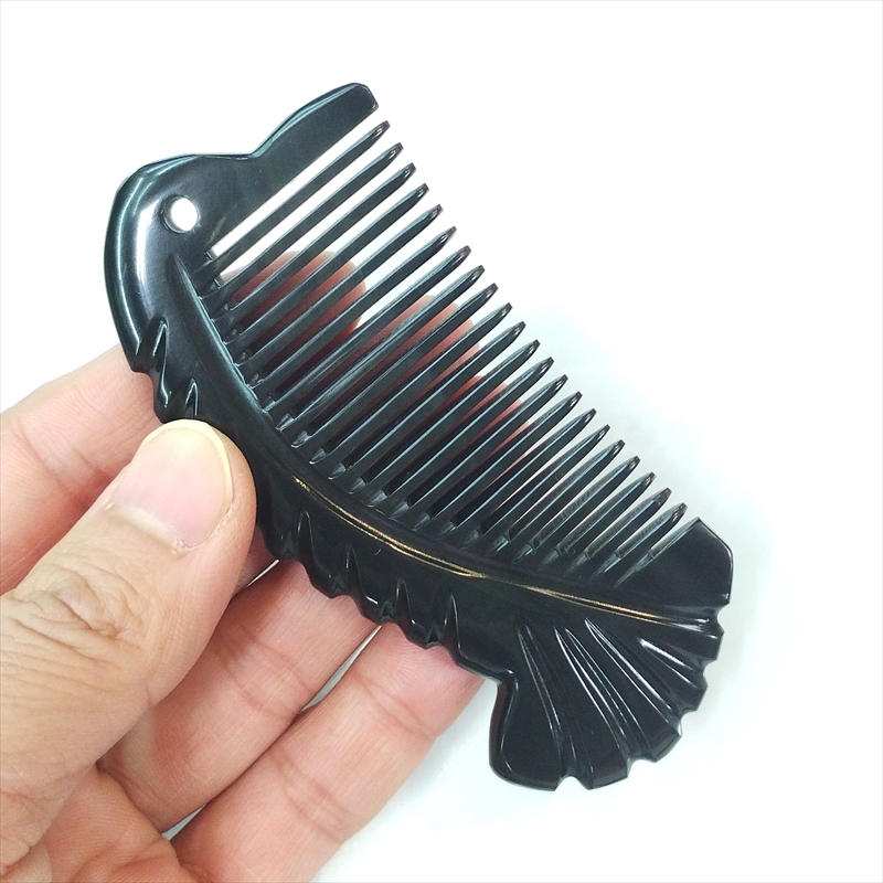 黒水牛角 彫刻工芸櫛 10cm 小A 魚彫刻 上級品 品質情報