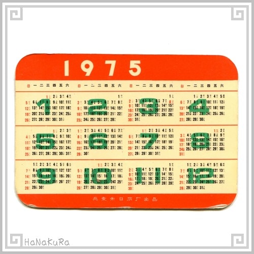 中国 カレンダー 1975年 08 二人のスケート 北京市日歴厰 コレクション カード