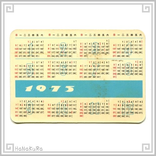 中国 カレンダー 1975年 19 白茶花(椿) 企業名無し コレクション カード
