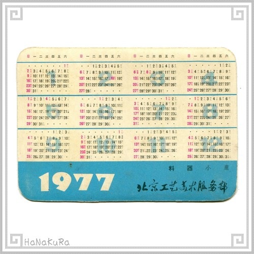 中国 カレンダー 1977年 10 小鹿 北京工芸美術服務部 コレクション カード