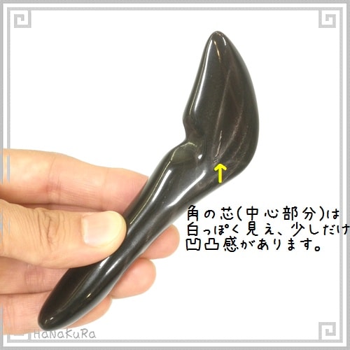 が見えるものもあります。また、ツボ押し部分の頂点付近からヘラ部分の中央付近にかけて、角の芯(中心)