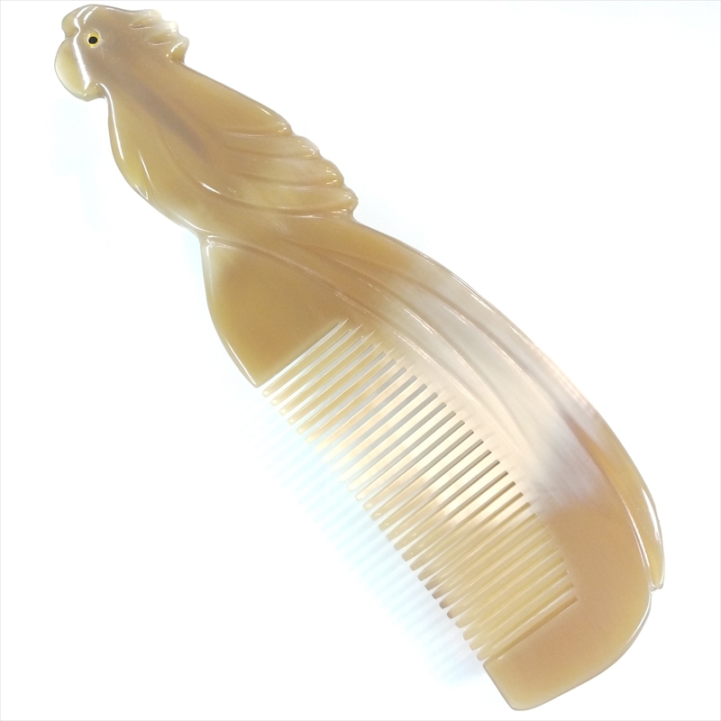ヤクの角櫛 くし 彫刻工芸櫛 上級品 21cmA 特大01 鳥彫刻 訳あり