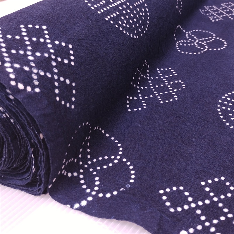 藍染め 生地 幅90cm 藍色09 点雲 藍印花布 1m単位 綿100% 片面染め ロットNo1605
