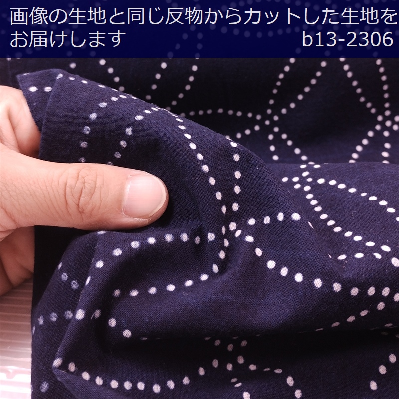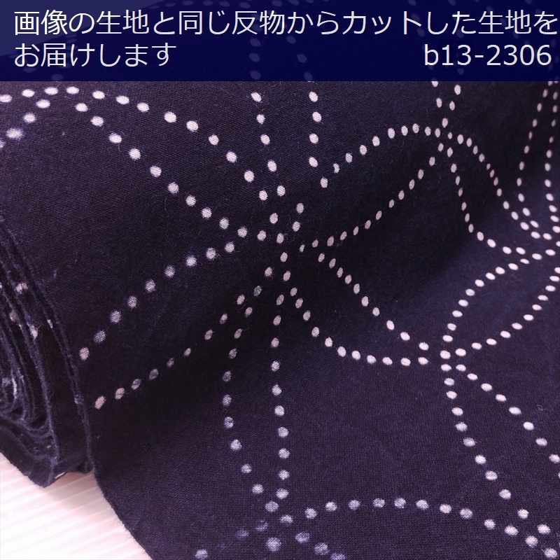 藍染め 生地 幅90cm 藍色35 六角点円 藍印花布 1m単位 綿100% 片面染め ロットNo1801