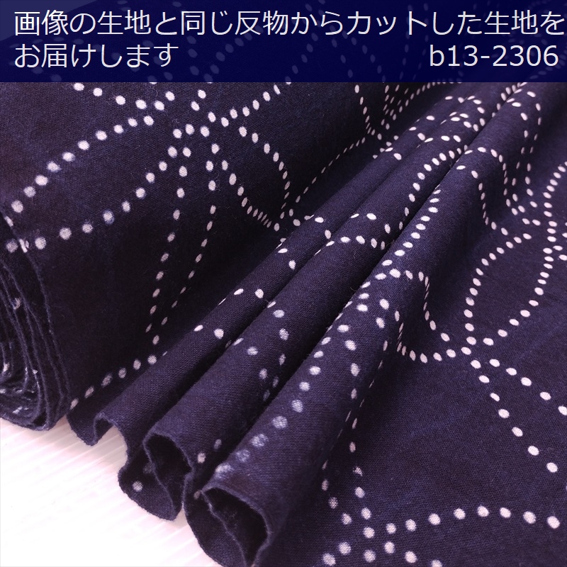 藍染め 生地 幅90cm 藍色44 三連波 藍印花布 1m単位 綿100% 片面染め ロットNo1500