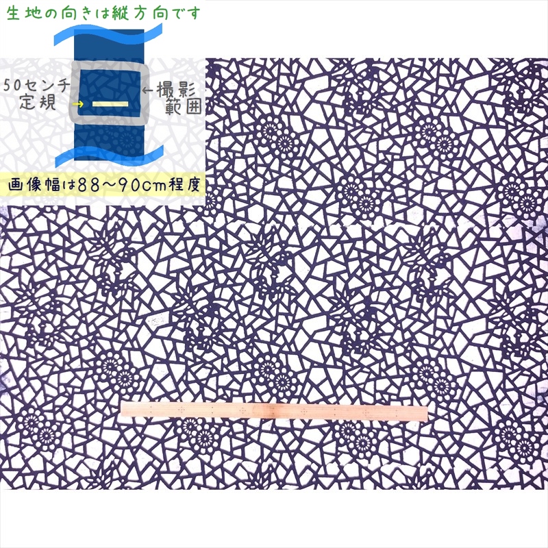 藍染め 生地 幅90cm 白色14 連魚 藍印花布 1m単位 綿100% 片面染め ロットNo2112