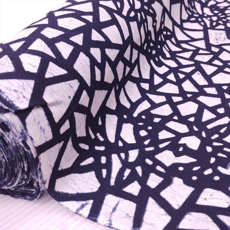 藍染め 生地 幅90cm 藍色46 点葉 藍印花布 1m単位 綿100% 片面染め ロットNo2504