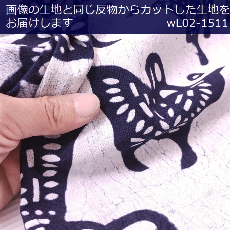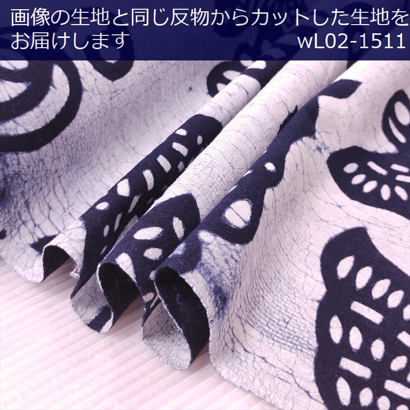 藍染め 生地 幅90cm 藍色43 花蝶 藍印花布 1m単位 綿100% 片面染め ロットNo2504