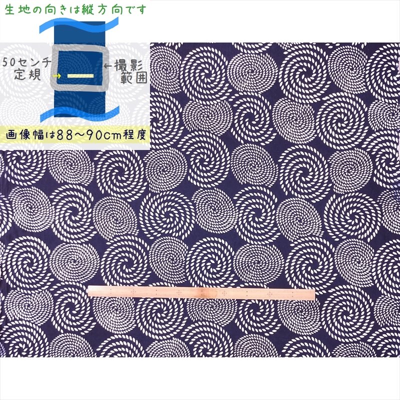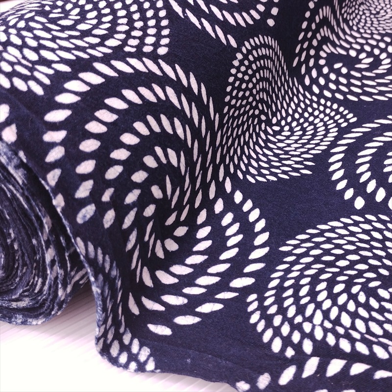 藍染め 生地 幅90cm 藍色57 波唐草 藍印花布 1m単位 綿100% 片面染め ロットNo1511
