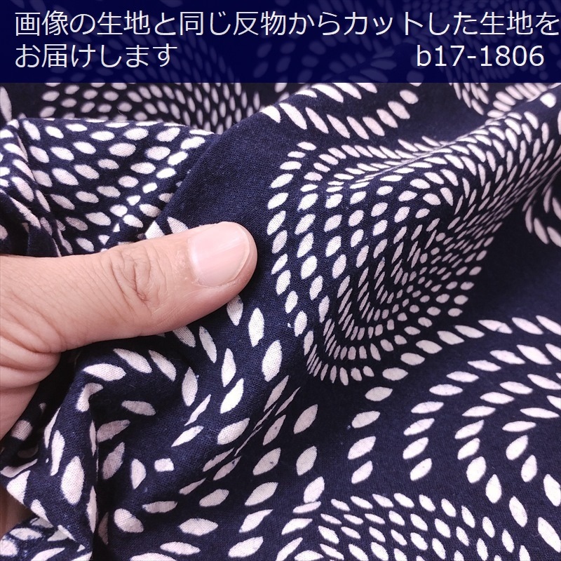 藍染め 生地 幅90cm 藍色47 花丸格子 藍印花布 1m単位 綿100% 片面染め ロットNo2112