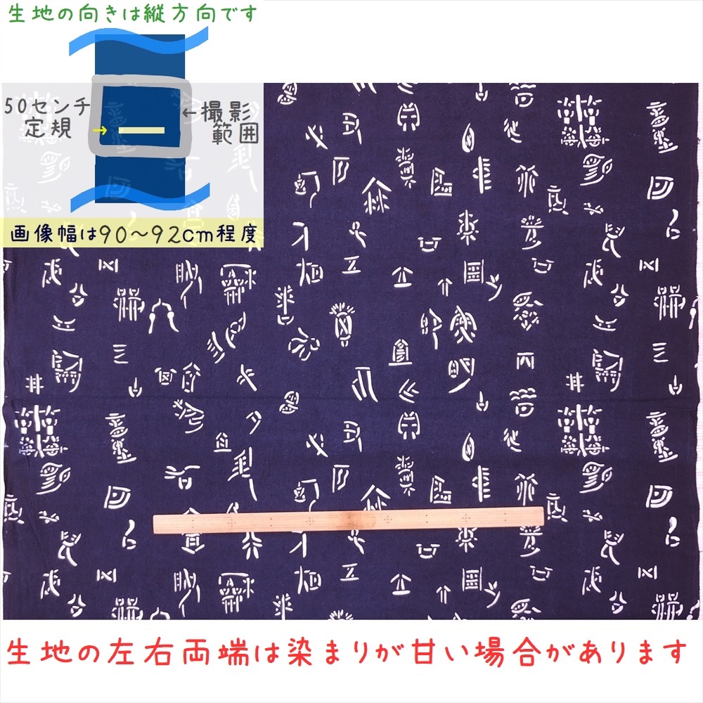藍染め 生地 幅90cm 藍色24 大百寿 藍印花布 1m単位 綿100% 片面染め ロットNo2112