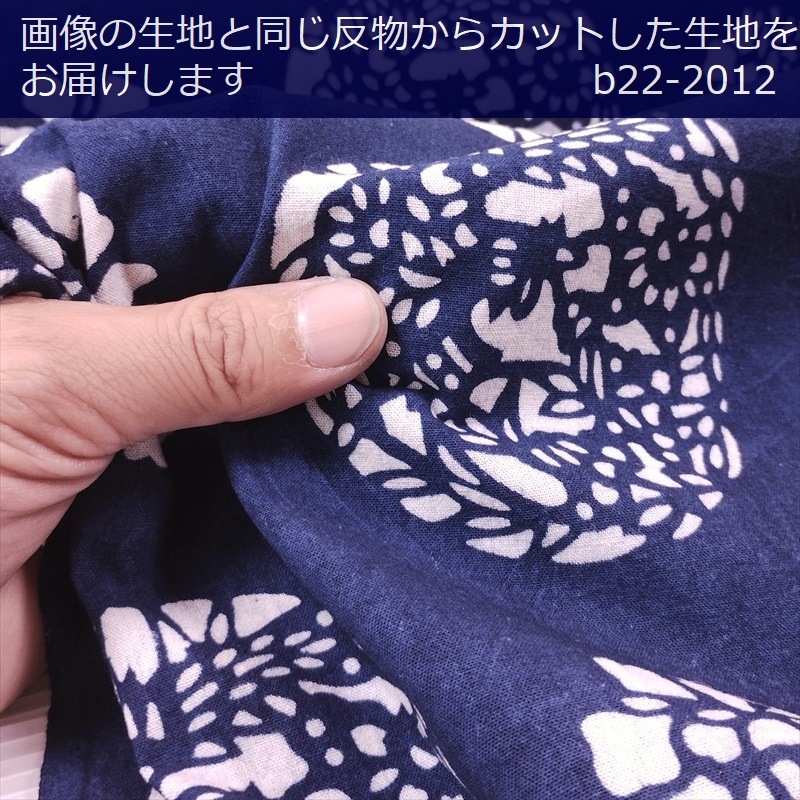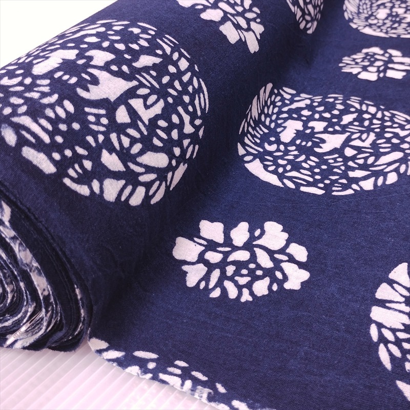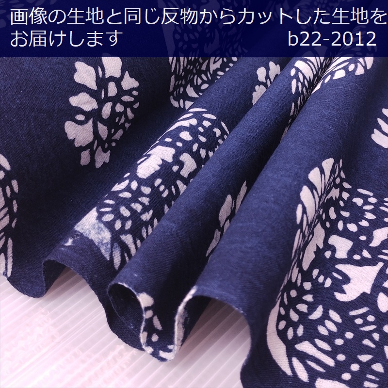 藍染め 生地 幅90cm 藍色19 鳳凰花盛 藍印花布 1m単位 綿100% 片面染め ロットNo1801