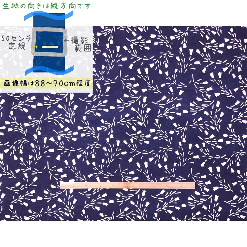 藍染め 生地 幅91cm 三色06 白牡丹青小花 藍印花布 1m単位 綿100% 片面染め ロットNo2504