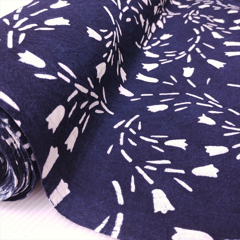 藍染め 生地 幅90cm 白色20 陰陽向日葵 藍印花布 1m単位 綿100% 片面染め ロットNo1500