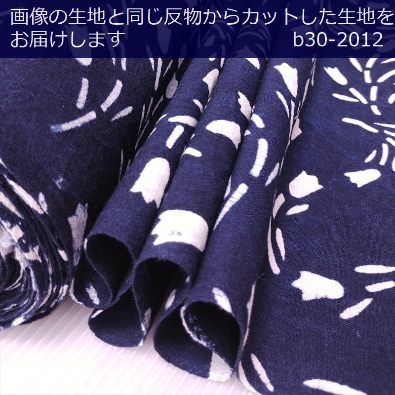 藍染め 生地 幅90cm 藍色54 大牡丹 藍印花布 1m単位 綿100% 片面染め ロットNo2012