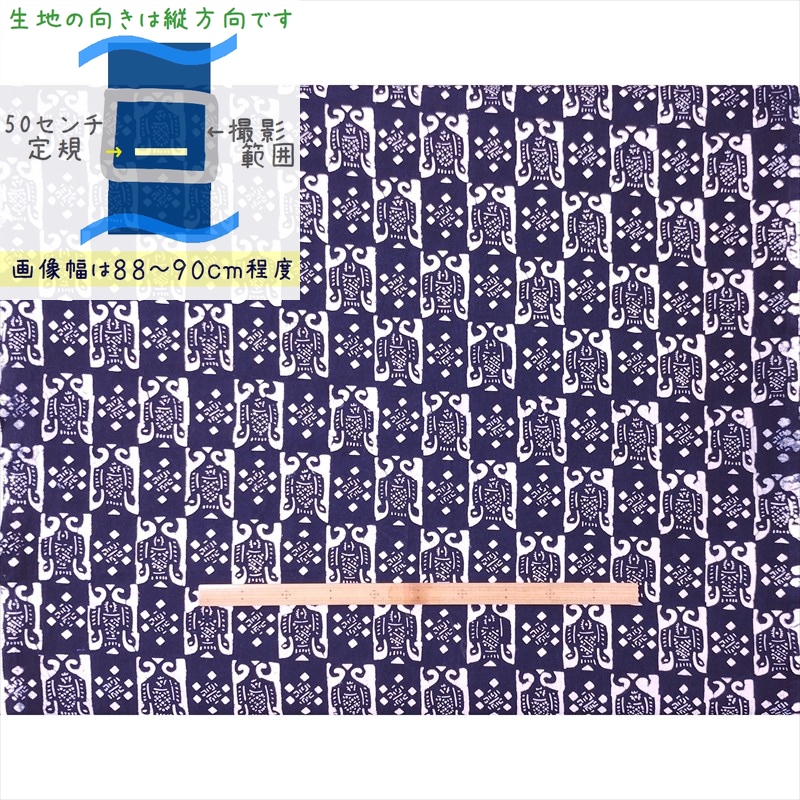 藍染め 生地 幅92cm 藍色45 とんぼ 藍印花布 1m単位 綿100% 片面染め ロットNo2504