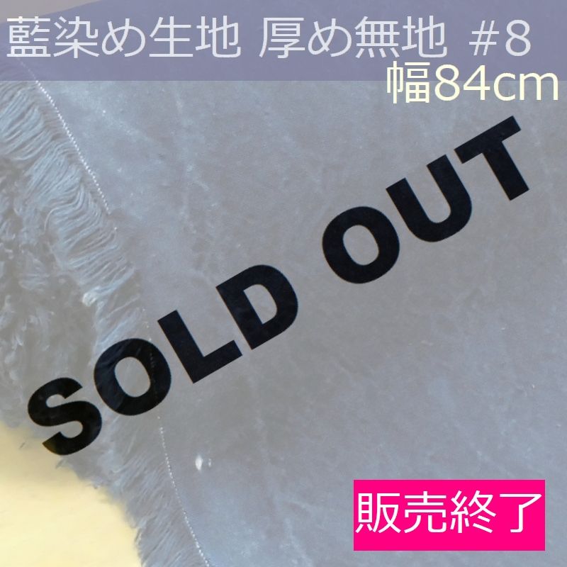 [生産終了]藍染め 無地 生地 幅84cm 厚手#8 藍印花布 1m単位 綿100% ロットNo2006