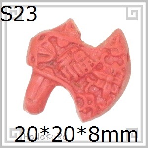 縦20横20厚8mm、表裏同一デザイン。斧の上端と柄の部分を貫通する形で穴が開いています。(商品画像に複数個が写っている商品でも、価格は1個の金額です)