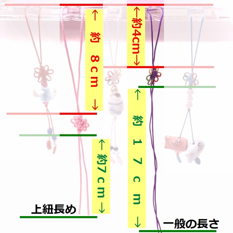 - ストラップ用の紐です。結びの下部分に、お好みのビーズなどを組み合わせると、簡単にオリジナルストラップが出来ちゃうという優れモノです。