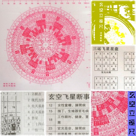 先天図や後天図、といった風水の基本から、八宅卦星、五行、六十四易卦などの専門的な物まで網羅した道具です。