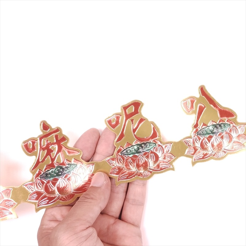 佛教 六字大明呪 六字真言 シール 蓮連台座 1枚 幅40cm縦7.3cm 防水 光沢あり