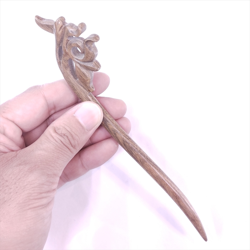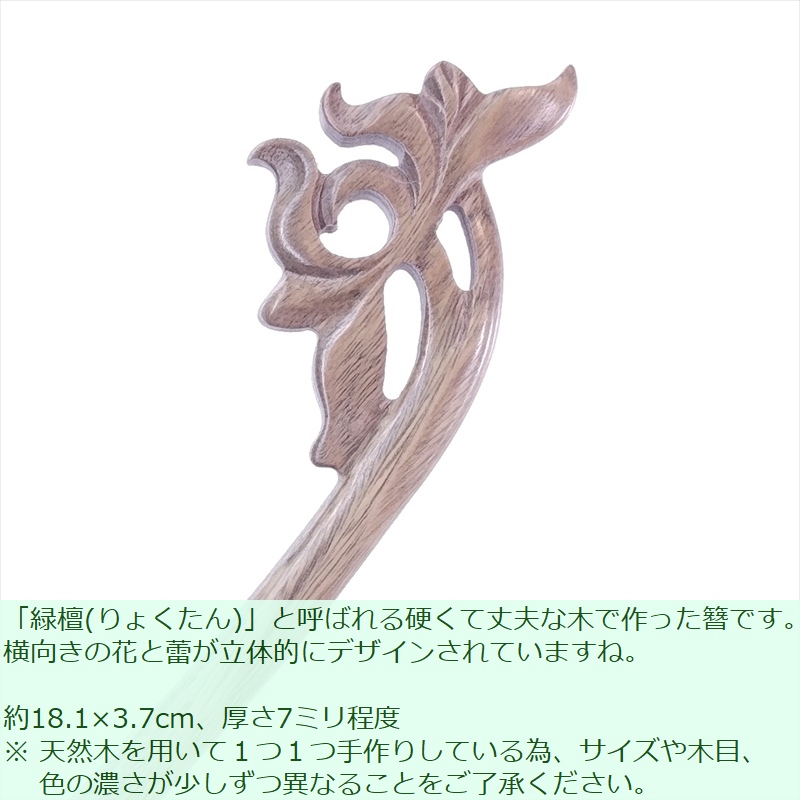 かんざし 簪 木製 緑檀 51 大咲花 普段使い シンプル 天然木 木彫り