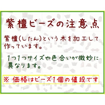 紫檀(したん)という高級木を彫刻して作ったビーズです。(商品画像に複数個が写っている商品でも、価格は1個の金額です)