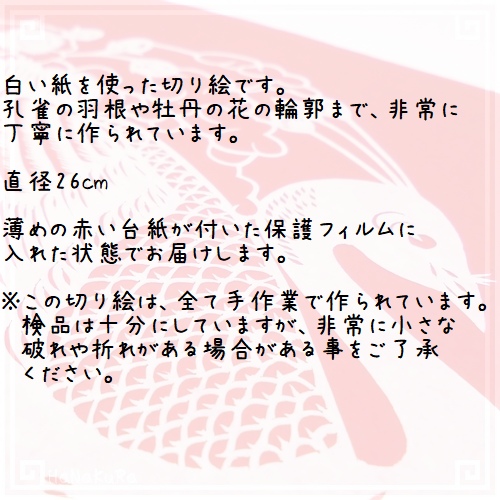 切り絵 剪紙 L106 工芸品 孔雀[白] 直径26cm