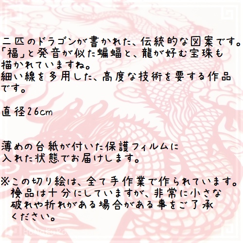 切り絵 剪紙 L107 工芸品 福珠双龍 直径26cm