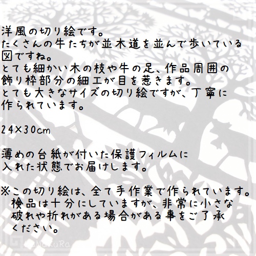 ※この切り絵は、全て手作業で作られています。検品は十分にしていますが、非常に小さな破れや折れがある場合がある事をご了承ください。