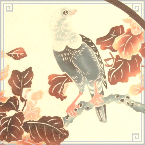 柔らかい色使いと精巧な切り絵が、「木の上の鳥」という題材とよく合っている、風雅な切り絵に仕上がっています。