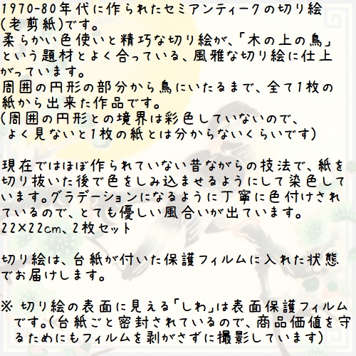 切り絵 老剪紙 セットA101 工芸品 セミアンティーク 枝上鳴鳥 22×22cm 2枚組