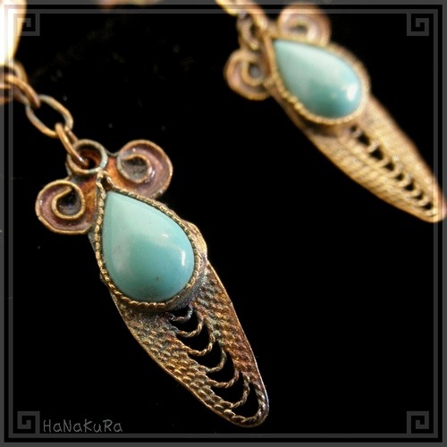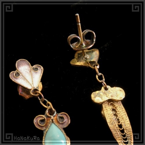 景泰銀 セミアンティーク 七宝 双雫ピアス
