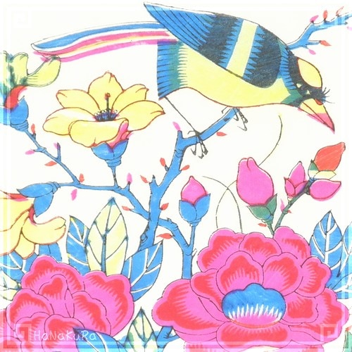 描かれているのは牡丹と白頭翁(シロガシラ。頭のてっぺんが白くなっているのが特徴)と呼ばれる鳥です。
