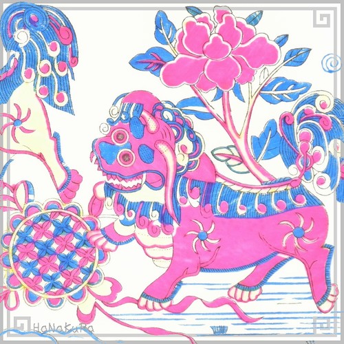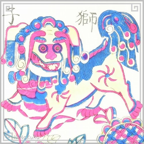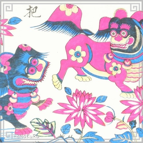 年画 版画 楊家埠年画紙 116 獅子巴狗 2枚組