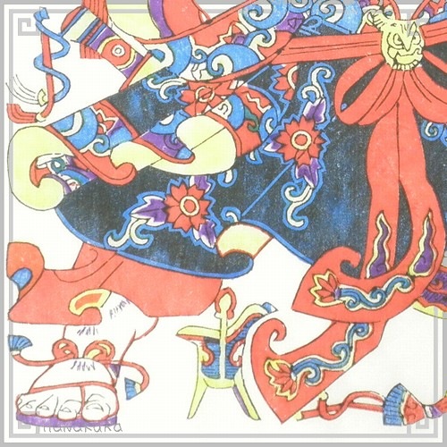 李逵(り き)という、水滸伝(すいこでん)の登場人物を描いた年画です。